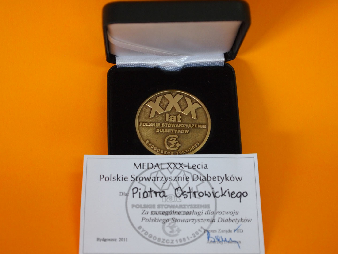 Uroczystego wręczenia medalu XXX-lecia Polskiego Stowarzyszenia Diabetyków dokonał Stanisław Lewandowski – Prezes Krajowego Stowarzyszenia na Rzecz Dzieci Niepełnosprawnych „Pomoc Dzieciom” podczas jubileuszowej, dziesiątej edycji imprezy integracyjnej „Dzień Przyjaznych Serc, organizowanej przez Dom Pomocy Społecznej „Przyjaznych Serc” oraz Fundację Panaceum.